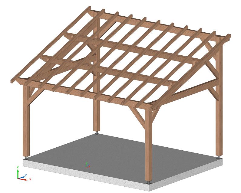 Charpente traditionnelle : abri 1 ou 2 pans en douglas